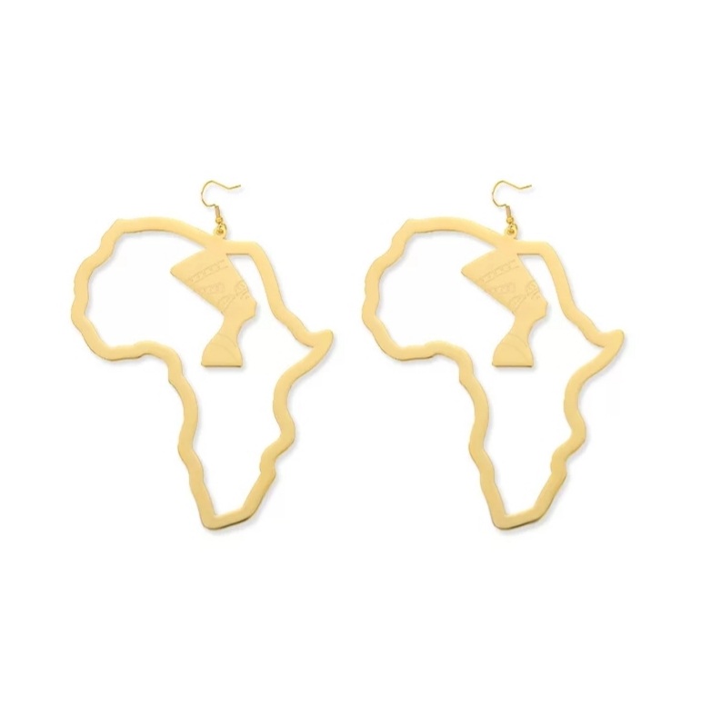 African Map Egyptian Queen Nefertiti Stud Earrings