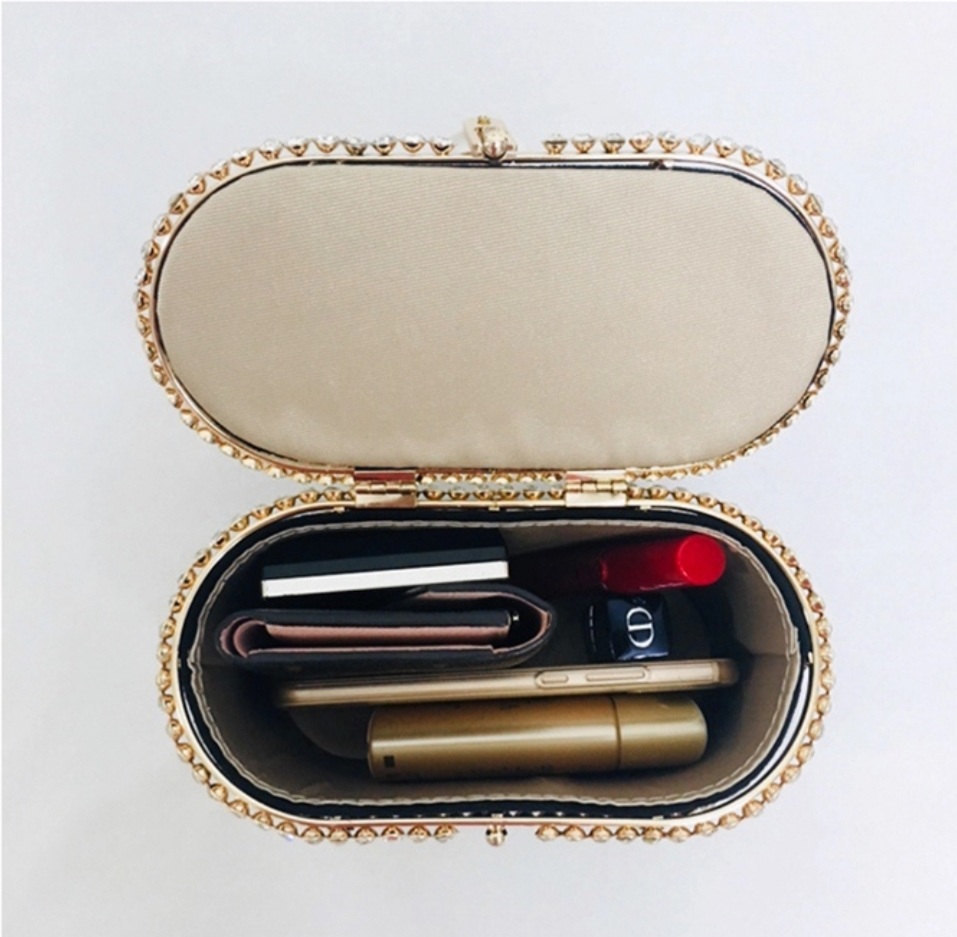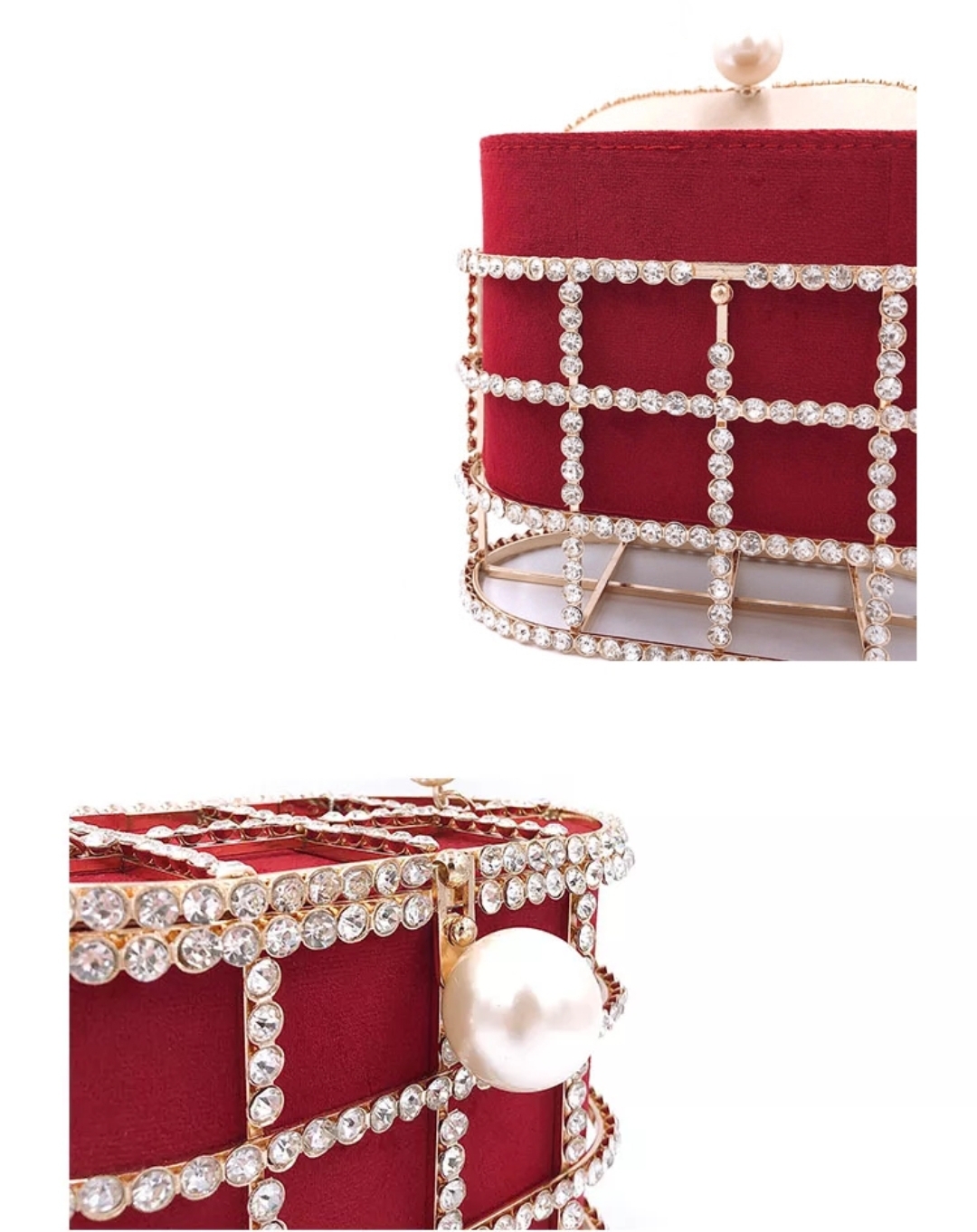 Be the first to review “Pearl Beaded Metallic Cage Handbag”